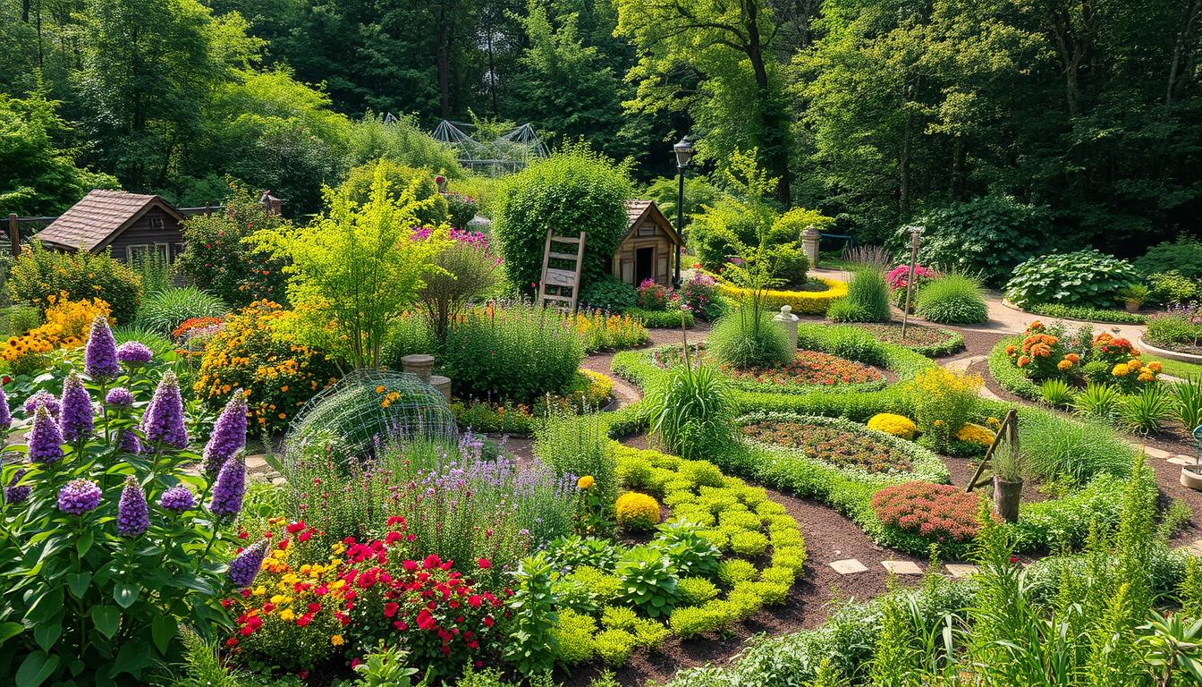 In permaculture gardens, earth care, people care, and fair share are key. Gardeners plan carefully to use resources well and boost biodiversity. They place plants and structures to save water and encourage nature to work together.